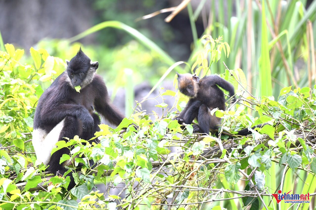 Hơn 90% (khoảng 350 cá thể) quần thể voọc mông trắng hoang dã trên toàn thế giới được bảo tồn tại Vân Long-Kim Bảng-Tam Chúc. Ảnh: V.L