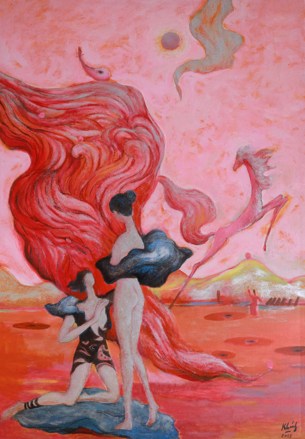 Không đơn thuần là một triển lãm gia đình, Dòng chảy đột biến đặt hai nghệ sĩ vào thế đối thoại trực diện. Khác biệt về thế hệ, trải nghiệm sống và tư duy thẩm mỹ được đẩy lên thành một xung lực thị giác rõ rệt, tạo nên không gian trưng bày vừa đối xứng vừa tương phản.