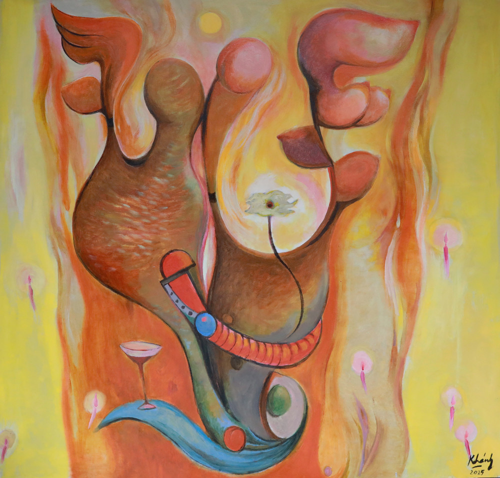 "Khi đứng cạnh nhau trong một triển lãm chung, tôi nhận ra cả hai cha con đều chảy trong một dòng không thuận. Những bế tắc, buồn tẻ hay cảm giác lạc loài không giết chết chúng tôi mà kích hoạt một sự đột biến, đưa chúng tôi đến thế giới nghệ thuật, nơi con người được tự do khám phá chính mình", Đào Anh Khánh chia sẻ.
