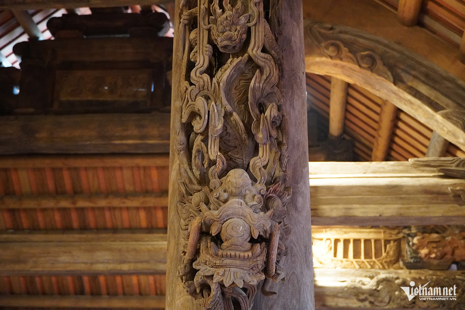 Sau trùng tu, nhiều chi tiết chạm khắc được làm sạch, phục hồi rõ nét, đặc biệt là hai bức chạm rồng chầu gắn trên cột đình với đường nét tinh xảo, nổi bật hơn trước.